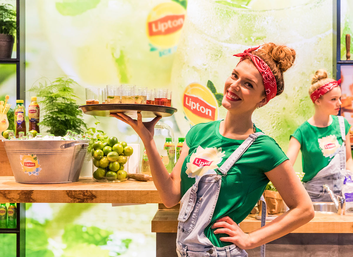Lipton Green; qua kleur van de stand hoefden we niet lang na te denken. Daarnaast kozen we in het creatieve concept voor een gezonde versbeleving. Samen met TasteMore creƫerden we een stand passend bij de frisheid en smaak van Lipton Green.